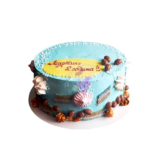 Детский торт изготовлен на заказ. Вес такого торта от 2 до 4 кг . Снаружи одноярусный торт покрыт кремом, без мастики и украшен конфетами, украшен безе . Наполнитель может быть с белковым кремом, с кремом на растительных сливках, с масляным кремом, с творожным кремом, с шоколадным кремом, со сливочно-творожным кремом, со сливочным кремом, со сметанным кремом . Коржи могут быть бисквитные, медовые, песочные, шоколадные. Цена от 91 р. Заказать, купить готовый детский торт на день рождения ребенка по низкой цене в кондитерской Добрый пекарь ☎ + 375 44 700 40 15.