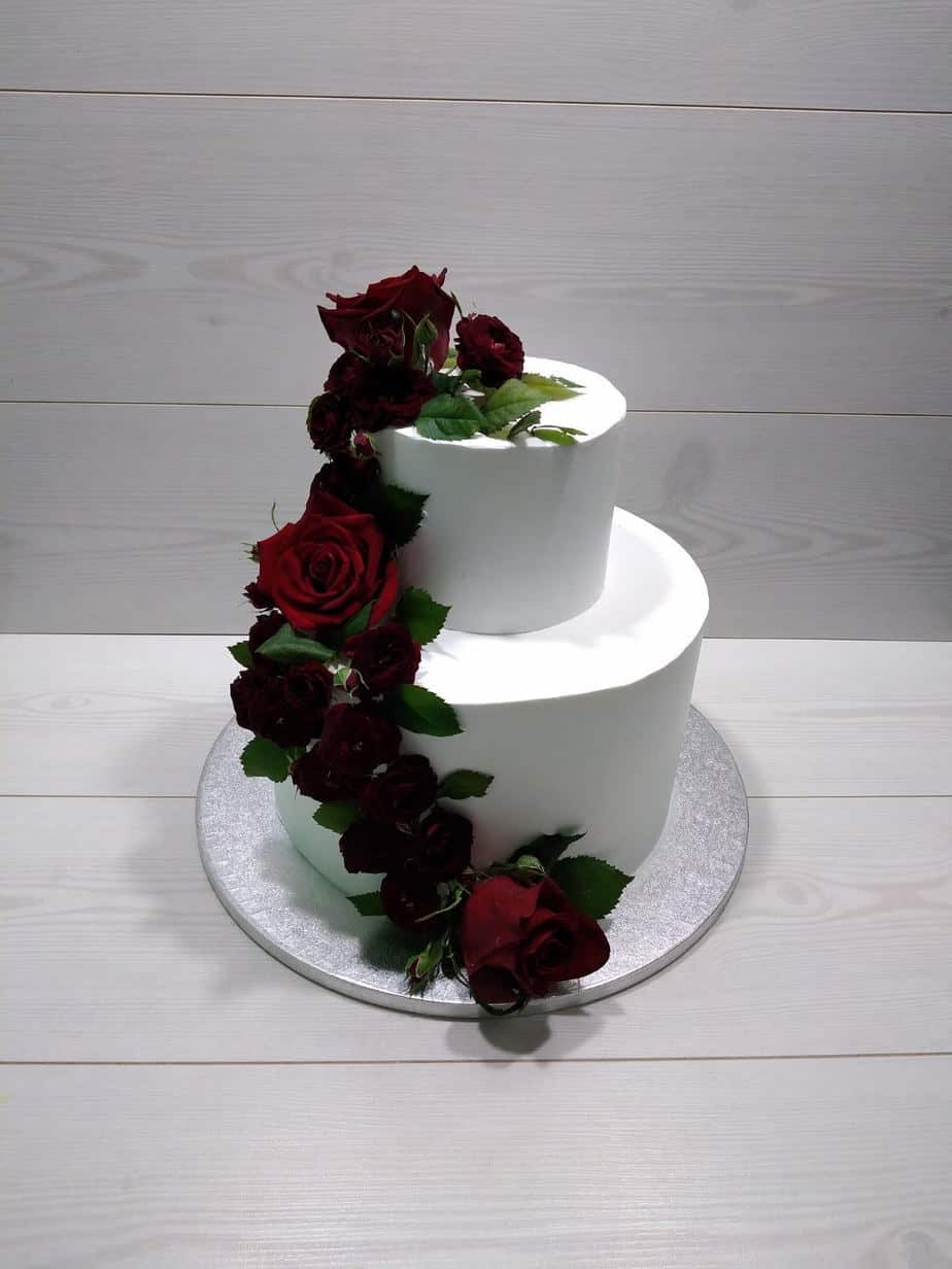 Свадебный торт изготовлен на заказ. Вес такого торта от 3,5 кг с начинкой Ягодное чудо. Снаружи двухъярусный торт покрыт кремом, без мастики и украшен живыми цветами . Наполнитель может быть с белковым кремом, с кремом на растительных сливках, с масляным кремом, с творожным кремом, с шоколадным кремом, со сливочно-творожным кремом, со сливочным кремом, со сметанным кремом . Белый торт . Коржи могут быть бисквитные, медовые, песочные, шоколадные. Цена от 157 р. Заказать, купить готовый торт на свадьбу по низкой цене в кондитерской Добрый пекарь ☎ + 375 44 700 40 15