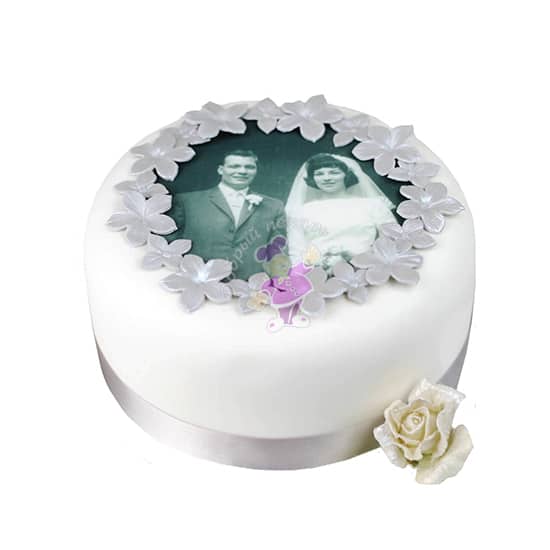 Свадебный торт изготовлен на заказ. Вес такого торта от 2 до 4 кг . Снаружи одноярусный торт покрыт мастикой и украшен фотопечатью, украшен цветами . Наполнитель может быть с белковым кремом, с кремом на растительных сливках, с масляным кремом, с шоколадным кремом, со сливочным кремом, со сметанным кремом . Белый торт . Коржи могут быть бисквитные, медовые, песочные, шоколадные. Цена от 108 р. Заказать, купить готовый торт на свадьбу по низкой цене в кондитерской Добрый пекарь ☎ + 375 44 700 40 15