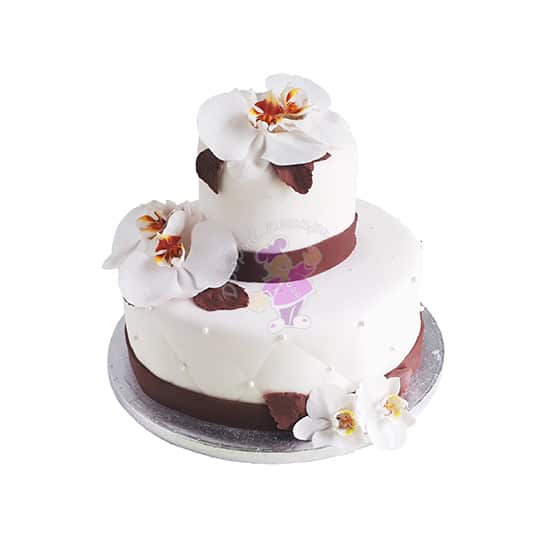 Свадебный торт изготовлен на заказ. Вес такого торта от 3 до 5 кг . Снаружи двухъярусный торт покрыт мастикой и украшен цветами, украшен художественной росписью . Наполнитель может быть с белковым кремом, с кремом на растительных сливках, с масляным кремом, с шоколадным кремом, со сливочным кремом, со сметанным кремом . Белый торт . Коржи могут быть бисквитные, медовые, песочные, шоколадные. Цена от 178 р. Заказать, купить готовый торт на свадьбу по низкой цене в кондитерской Добрый пекарь ☎ + 375 44 700 40 15