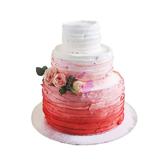 Свадебный торт изготовлен на заказ. Вес такого торта от 5 до 8 кг . Снаружи трехъярусный торт покрыт кремом, без мастики и украшен цветами . Наполнитель может быть с белковым кремом, с кремом на растительных сливках, с масляным кремом, с творожным кремом, с шоколадным кремом, со сливочно-творожным кремом, со сливочным кремом, со сметанным кремом . Белый торт, Розовый торт . Коржи могут быть бисквитные, медовые, песочные, шоколадные. Цена от 245 р. Заказать, купить готовый торт на свадьбу по низкой цене в кондитерской Добрый пекарь ☎ + 375 44 700 40 15