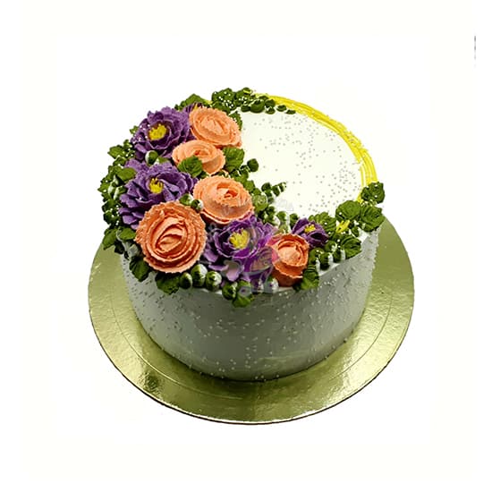 Праздничный торт изготовлен на заказ. Вес такого торта от 2 до 4 кг . Снаружи одноярусный торт покрыт кремом, без мастики и украшен цветами . Наполнитель может быть с белковым кремом, с кремом на растительных сливках, с масляным кремом, с творожным кремом, с шоколадным кремом, со сливочно-творожным кремом, со сливочным кремом, со сметанным кремом . Коржи могут быть бисквитные, медовые, песочные, шоколадные. Цена от 84 р. Заказать, купить торт на праздник по низкой цене в кондитерской Добрый пекарь ☎ + 375 44 700 40 15.