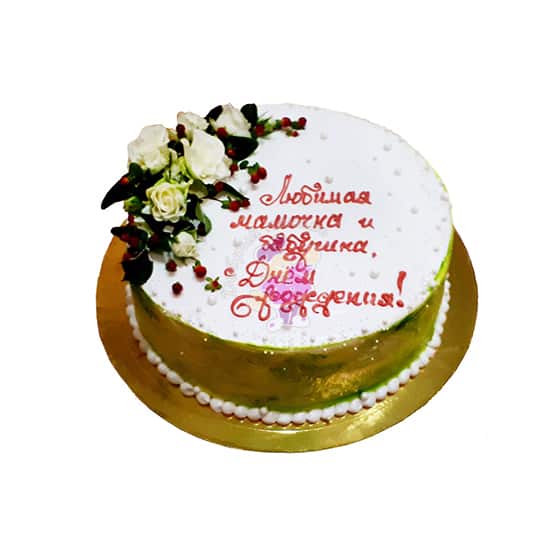 Торт на День Рождения изготовлен на заказ. Вес такого торта от 2 до 4 кг . Снаружи одноярусный торт покрыт кремом, без мастики и украшен цветами, украшен художественной росписью . Наполнитель может быть с белковым кремом, с кремом на растительных сливках, с масляным кремом, с творожным кремом, с шоколадным кремом, со сливочно-творожным кремом, со сливочным кремом, со сметанным кремом . Коржи могут быть бисквитные, медовые, песочные, шоколадные. Цена от 88 р. Заказать, купить торт на День рождения по низкой цене в кондитерской Добрый пекарь ☎ + 375 44 700 40 15.