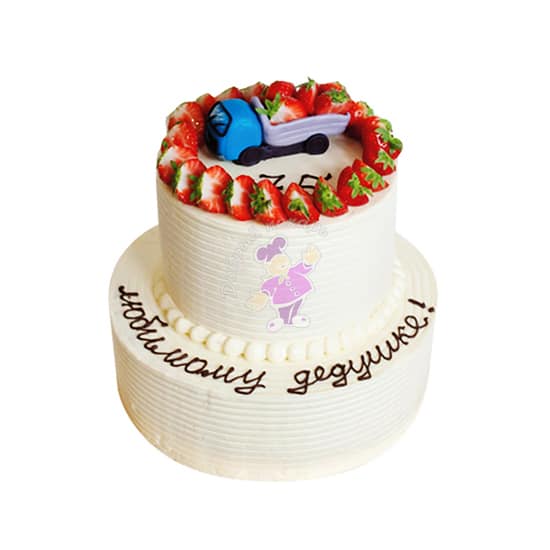 Торт на День Рождения изготовлен на заказ. Вес такого торта от 3 до 5 кг . Снаружи двухъярусный торт покрыт кремом, без мастики и украшен фигурками, украшен ягодами . Наполнитель может быть с белковым кремом, с кремом на растительных сливках, с масляным кремом, с творожным кремом, с шоколадным кремом, со сливочно-творожным кремом, со сливочным кремом, со сметанным кремом . Коржи могут быть бисквитные, медовые, песочные, шоколадные. Цена от 139 р. Заказать, купить торт на День рождения по низкой цене в кондитерской Добрый пекарь ☎ + 375 44 700 40 15.