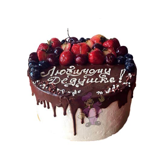 Торт на День Рождения изготовлен на заказ. Вес такого торта от 2 до 4 кг . Снаружи одноярусный торт покрыт кремом, без мастики и украшен шоколадом, украшен ягодами . Наполнитель может быть с белковым кремом, с кремом на растительных сливках, с масляным кремом, с творожным кремом, с шоколадным кремом, со сливочно-творожным кремом, со сливочным кремом, со сметанным кремом . Коржи могут быть бисквитные, медовые, песочные, шоколадные. Цена от 92 р. Заказать, купить торт на День рождения по низкой цене в кондитерской Добрый пекарь ☎ + 375 44 700 40 15.